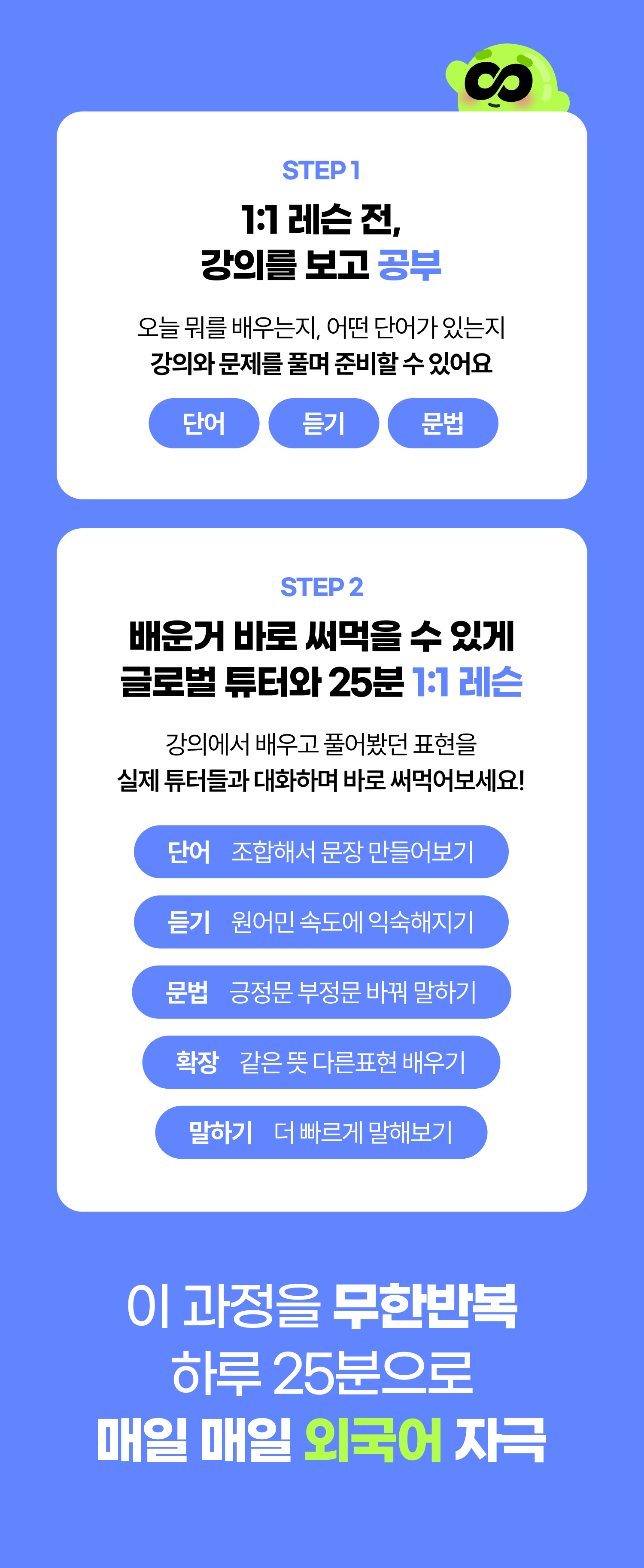 무제한 1:1 외국어 레슨 더블팩!